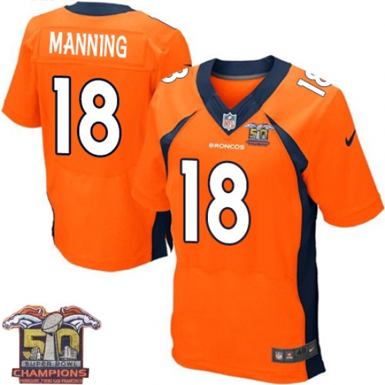 Men's Nike Denver Broncos #18 Peyton Manning Elite Orange Team Color Super Bowl 50 Champions NFL Jersey
