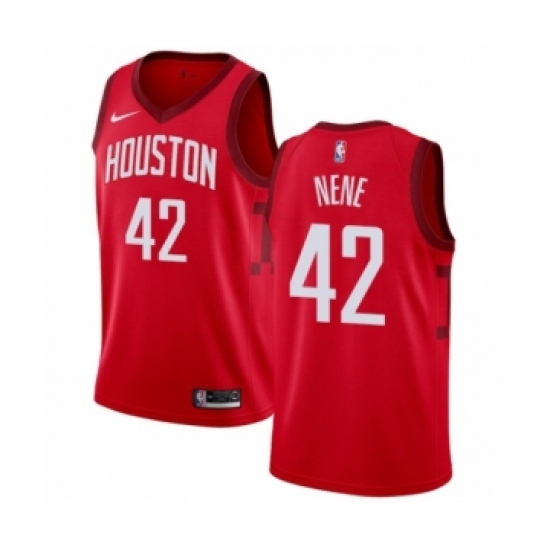 >Men's Nike Houston Rockets #42 Nene Red Swingman Jersey - Earned Edition