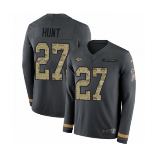 Men's Nike Kansas City Chiefs #27 Kareem Hunt Limited Black Salute to Service Therma Long Sleeve NFL Jersey