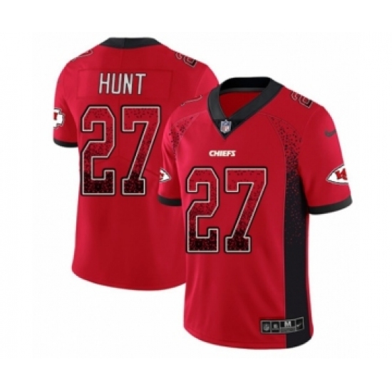 >Men's Nike Kansas City Chiefs #27 Kareem Hunt Limited Red Therma Long Sleeve NFL Jersey