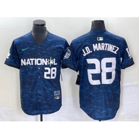>Men's Nike Los Angeles Dodgers #28 JD Martinez Number Royal 2023 All Star Cool Base Stitched Baseball Jersey