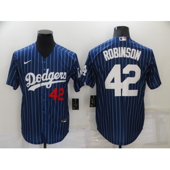 >Men's Nike Los Angeles Dodgers #42 Jackie Robinson Blue Stripes Authentic Jersey