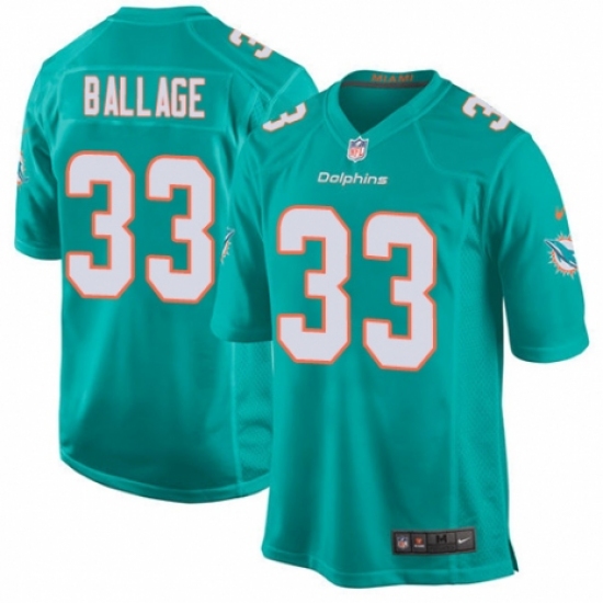 >Men's Nike Miami Dolphins #33 Kalen Ballage Game Aqua Green Team Color NFL Jersey