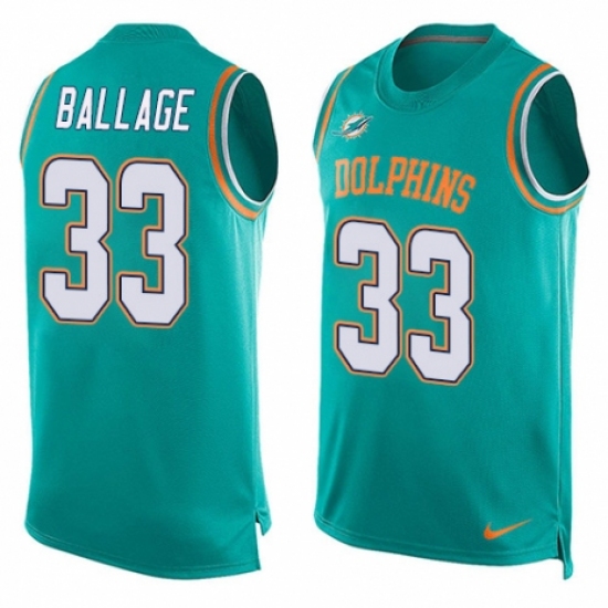Men's Nike Miami Dolphins #33 Kalen Ballage Limited Aqua Green Player Name & Number Tank Top NFL Jersey