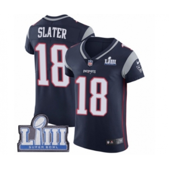 >Men's Nike New England Patriots #18 Matthew Slater Navy Blue Team Color Vapor Untouchable Elite Player Super Bowl LIII Bound NFL Jersey