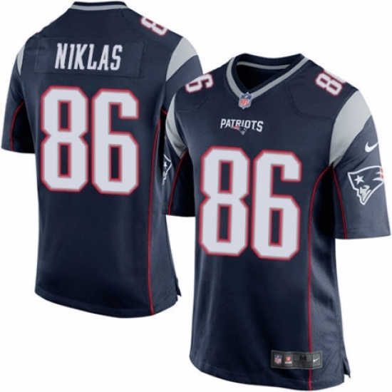 Men's Nike New England Patriots #86 Troy Niklas Game Navy Blue Team Color NFL Jersey
