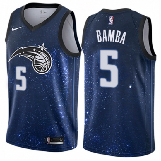 >Men's Nike Orlando Magic #5 Mohamed Bamba Swingman Blue NBA Jersey - City Edition
