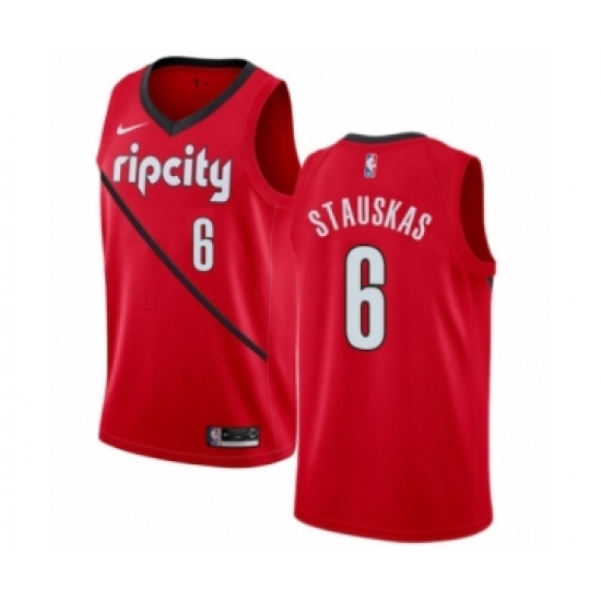 Men's Nike Portland Trail Blazers #6 Nik Stauskas Red Swingman Jersey - Earned Edition