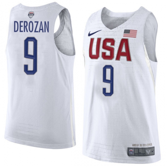 Men's Nike Team USA #9 DeMar DeRozan Swingman White 2016 Olympic Basketball Jersey