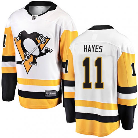 >Men's Pittsburgh Penguins #11 Jimmy Hayes Authentic White Away Fanatics Branded Breakaway NHL Jersey