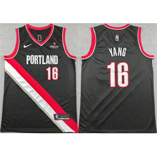 Men's Portland Trail Blazers #16 Yang Hansen Black Icon Edition Stitched Basketball Jersey