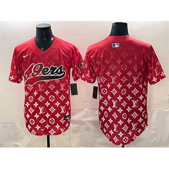 Men's San Francisco 49ers Red Team Big Logo With Cool Base Stitched Baseball Jersey1