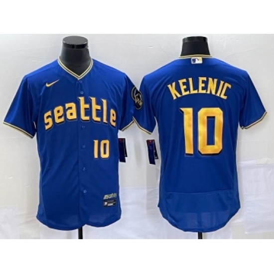 Men's Seattle Mariners #10 Jarred Kelenic Blue 2023 City Connect Flex Base Stitched Jersey