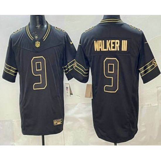 >Men's Seattle Seahawks #9 Kenneth Walker III Black Gold FUSE Vapor Limited Stitched Jersey