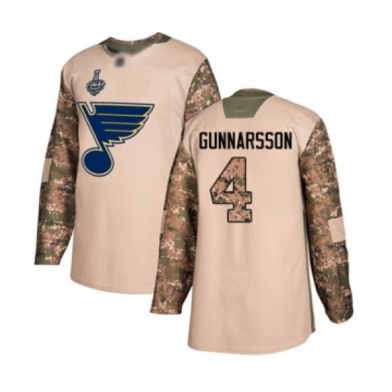 >Men's St. Louis Blues #4 Carl Gunnarsson Authentic Camo Veterans Day Practice 2019 Stanley Cup Final Bound Hockey Jersey