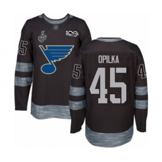 Men's St. Louis Blues #45 Luke Opilka Authentic Black 1917-2017 100th Anniversary 2019 Stanley Cup Final Bound Hockey Jersey