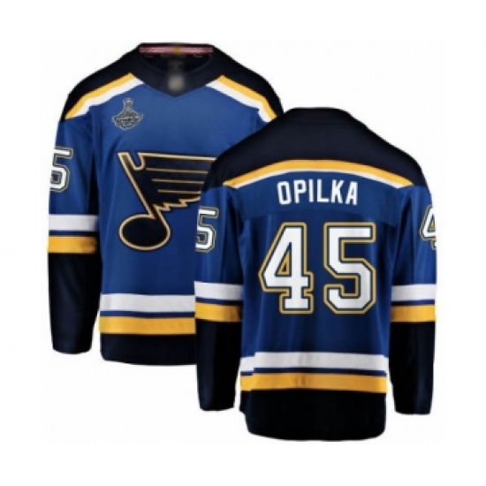 >Men's St. Louis Blues #45 Luke Opilka Fanatics Branded Royal Blue Home Breakaway 2019 Stanley Cup Champions Hockey Jersey