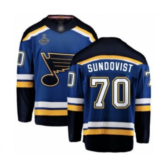 >Men's St. Louis Blues #70 Oskar Sundqvist Fanatics Branded Royal Blue Home Breakaway 2019 Stanley Cup Champions Hockey Jersey