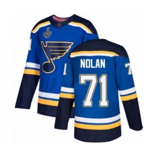 >Men's St. Louis Blues #71 Jordan Nolan Authentic Royal Blue Home 2019 Stanley Cup Final Bound Hockey Jersey