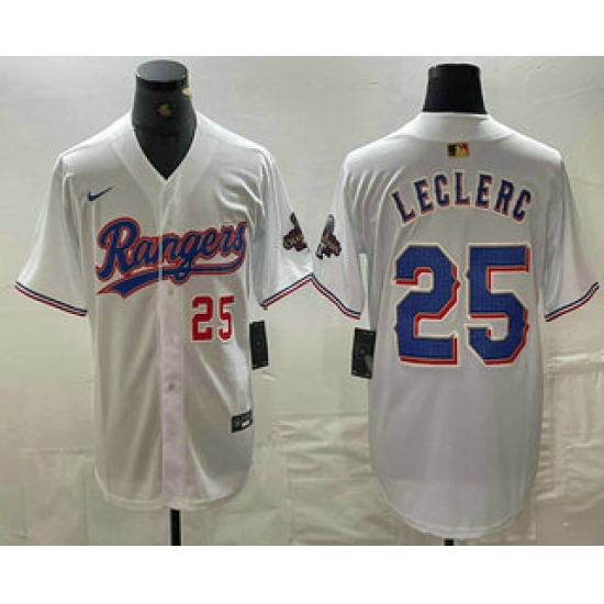 Men's Texas Rangers #25 Jose Leclerc Number White 2024 Gold Collection Limited Cool Base Jerseys