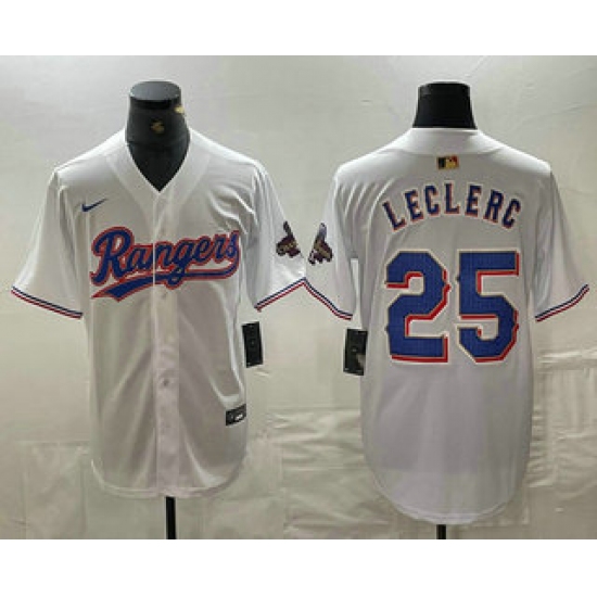 Men's Nike Texas Rangers #25 Jose Leclerc White Home Stitched Baseball Jersey
