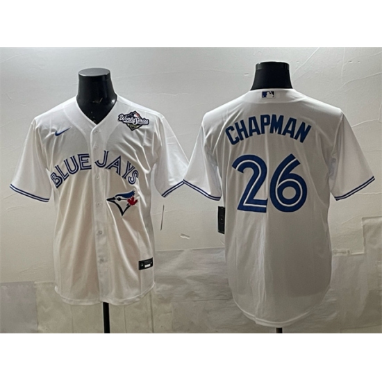 Men's Toronto Blue Jays #26 Matt Chapman White 2025 World Series Home Cool Base Stitched Jersey