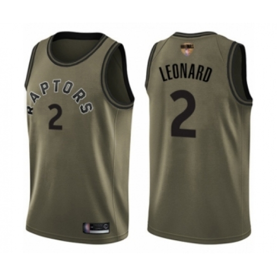 >Men's Toronto Raptors #2 Kawhi Leonard Swingman Green Salute to Service 2019 Basketball Finals Bound Jersey