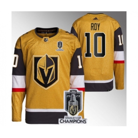 Men's Vegas Golden Knights #10 Nicolas Roy Gold 2023 Stanley Cup Champions Stitched Jersey