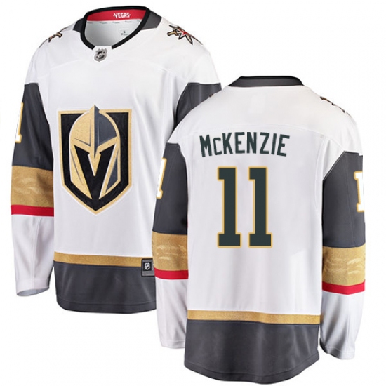 >Men's Vegas Golden Knights #11 Curtis McKenzie Authentic White Away Fanatics Branded Breakaway NHL Jersey