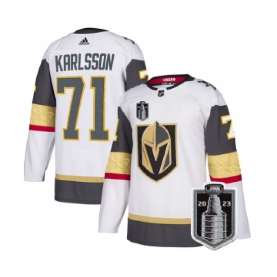 >Men's Vegas Golden Knights #71 William Karlsson White 2023 Stanley Cup Final Stitched Jersey