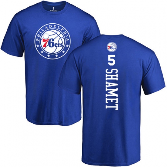>NBA Nike Philadelphia 76ers #5 Landry Shamet Royal Blue Backer T-Shirt