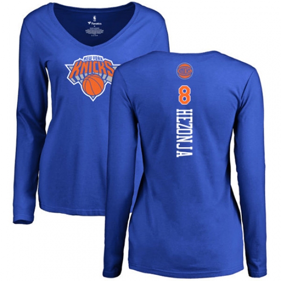 NBA Women's Nike New York Knicks #8 Mario Hezonja Royal Blue Backer Long Sleeve T-Shirt