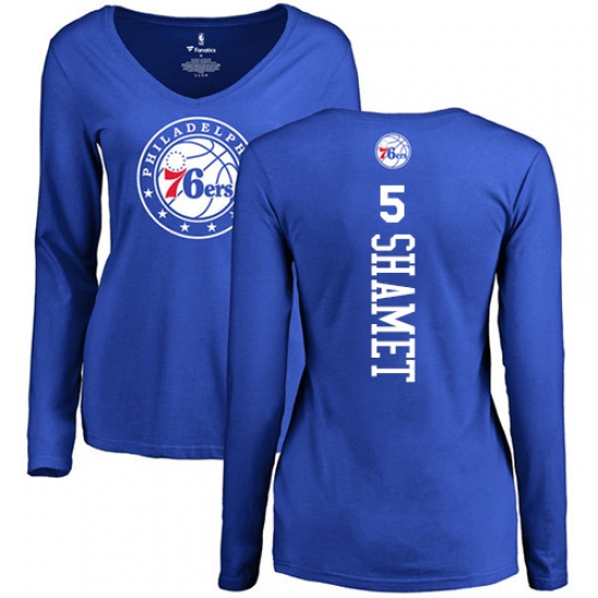 NBA Women's Nike Philadelphia 76ers #5 Landry Shamet Royal Blue Backer Long Sleeve T-Shirt
