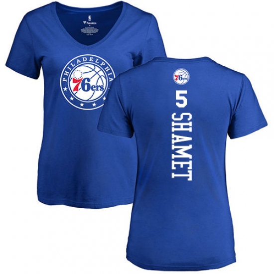 >NBA Women's Nike Philadelphia 76ers #5 Landry Shamet Royal Blue Backer T-Shirt