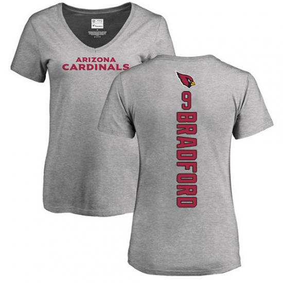 NFL Women's Nike Arizona Cardinals #9 Sam Bradford Ash Backer V-Neck T-Shirt