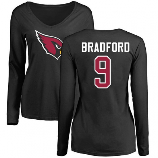 NFL Women's Nike Arizona Cardinals #9 Sam Bradford Black Name & Number Logo Long Sleeve T-Shirt