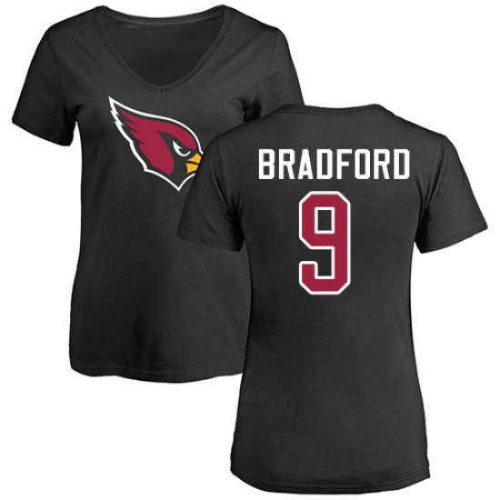 NFL Women's Nike Arizona Cardinals #9 Sam Bradford Black Name & Number Logo T-Shirt