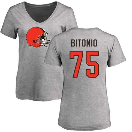 NFL Women's Nike Cleveland Browns #75 Joel Bitonio Ash Name & Number Logo T-Shirt