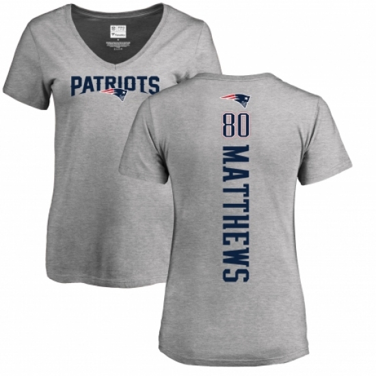 NFL Women's Nike New England Patriots #80 Jordan Matthews Ash Backer V-Neck T-Shirt