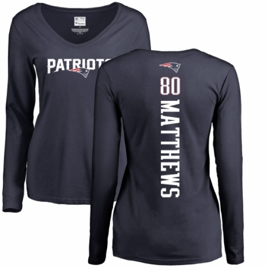 NFL Women's Nike New England Patriots #80 Jordan Matthews Navy Blue Backer Slim Fit Long Sleeve T-Shirt