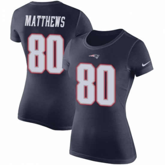 NFL Women's Nike New England Patriots #80 Jordan Matthews Navy Blue Rush Pride Name & Number T-Shirt