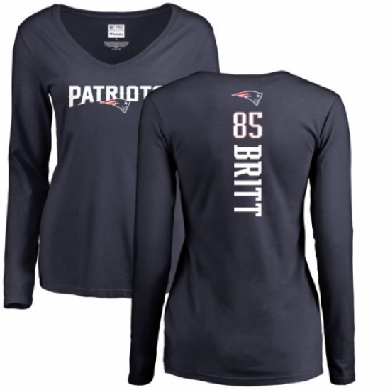 >NFL Women's Nike New England Patriots #85 Kenny Britt Navy Blue Backer Slim Fit Long Sleeve T-Shirt