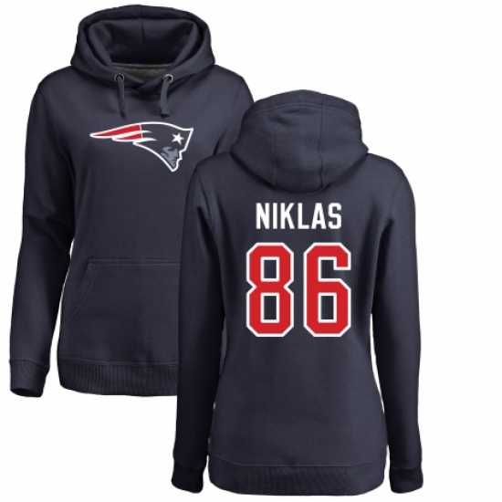 >NFL Women's Nike New England Patriots #86 Troy Niklas Navy Blue Name & Number Logo Pullover Hoodie