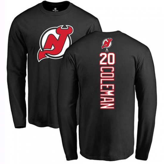 >NHL Adidas New Jersey Devils #20 Blake Coleman Black Backer Long Sleeve T-Shirt