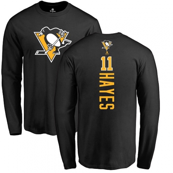 >NHL Adidas Pittsburgh Penguins #11 Jimmy Hayes Black Backer Long Sleeve T-Shirt