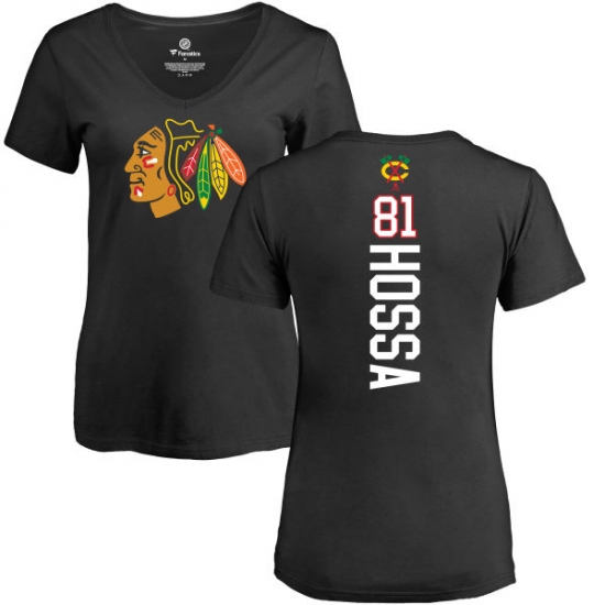NHL Women's Adidas Chicago Blackhawks #81 Marian Hossa Black Backer T-Shirt