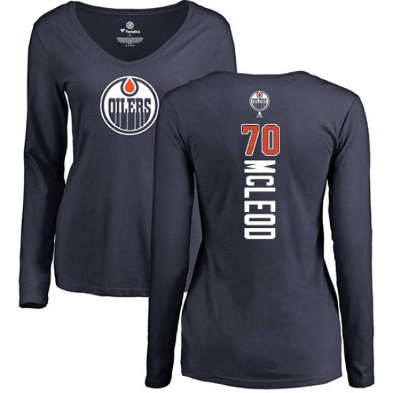 >NHL Women's Adidas Edmonton Oilers #70 Ryan McLeod Navy Blue Backer Slim Fit Long Sleeve T-Shirt