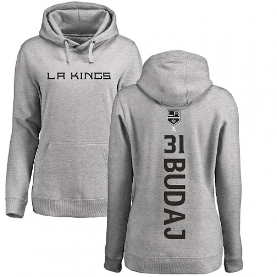 >NHL Women's Adidas Los Angeles Kings #31 Peter Budaj Ash Backer Pullover Hoodie