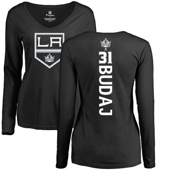 NHL Women's Adidas Los Angeles Kings #31 Peter Budaj Black Backer Long Sleeve T-Shirt