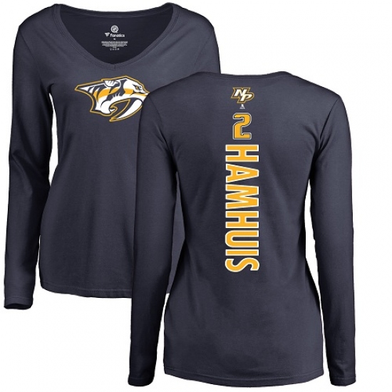 >NHL Women's Adidas Nashville Predators #2 Dan Hamhuis Navy Blue Backer Long Sleeve T-Shirt